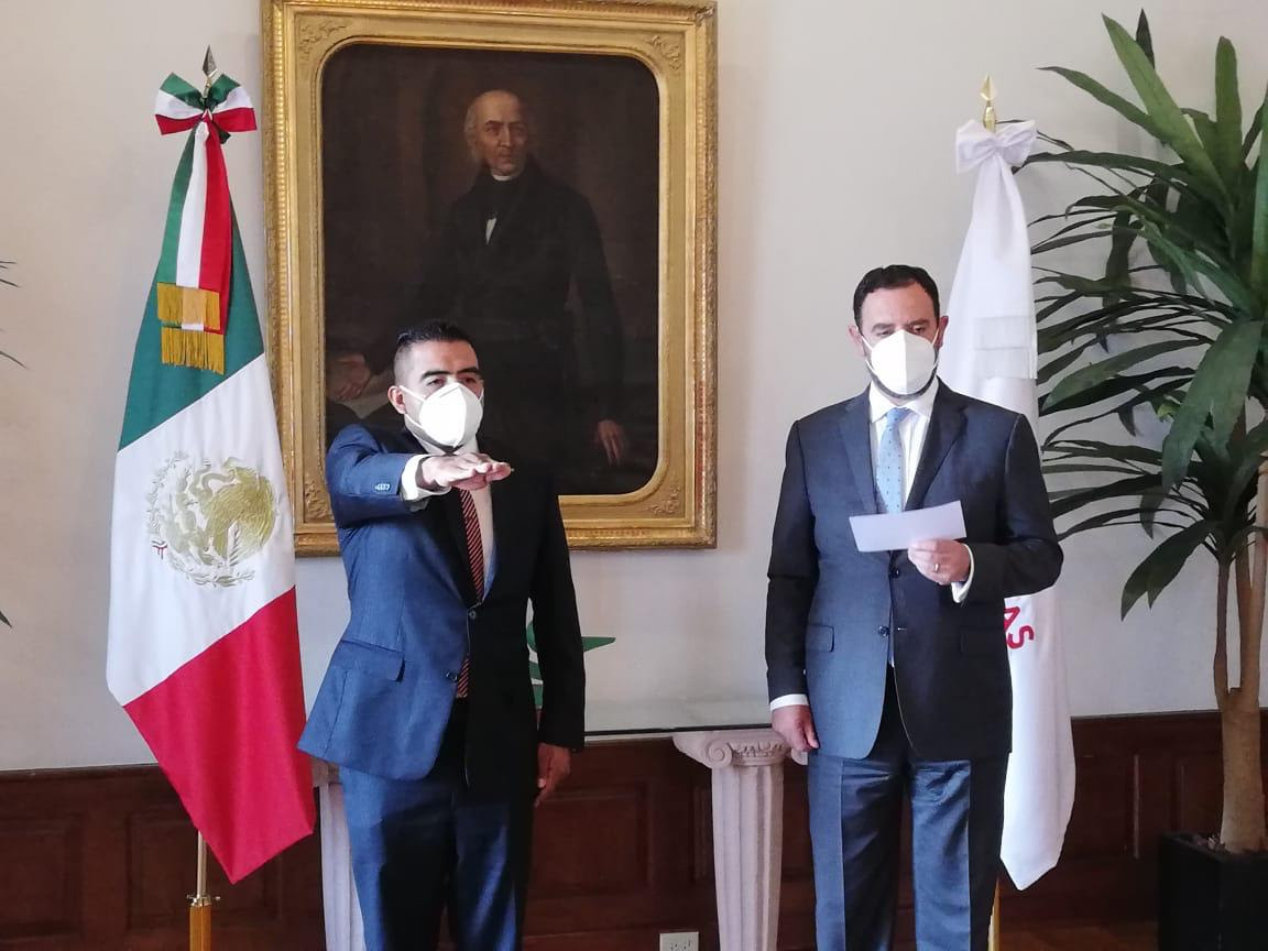 El Gobernador Alejandro Tello tomó protesta al nuevo Secretario de Seguridad Pública del estado, Arturo López Bazán, quien cuenta con una amplia trayectoria dentro de la otrora Policía Federal y la Coordinación Nacional Antisecuestro.