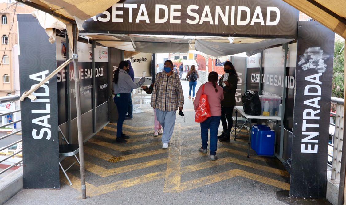Estas acciones se suman a los 71 filtros fijos e itinerantes instalados por todo el municipio, en puntos de sustantiva afluencia de personas, como en el puente peatonal de la Plaza Bicentenario, lugar donde se encuentra la caseta de sanidad, siguiendo los protocolos antes mencionados, con el objetivo de reforzar las medidas preventivas y de promoción de la salud en la capital, abonando en el apoyo y cuidado de quienes salen a realizar actividades esenciales.