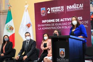 En el marco del segundo informe de trabajo del alcalde capitalino Ulises Mejía Haro, se realizó por primera vez el informe de actividades en materia de igualdad de género, a cargo de Emilia Pesci Martínez, directora del Instituto Municipal de las Mujeres Zacatecanas para la Igualdad (INMUZAI), en el que se dieron a conocer los resultados de las políticas establecidas durante estos dos años de administración.