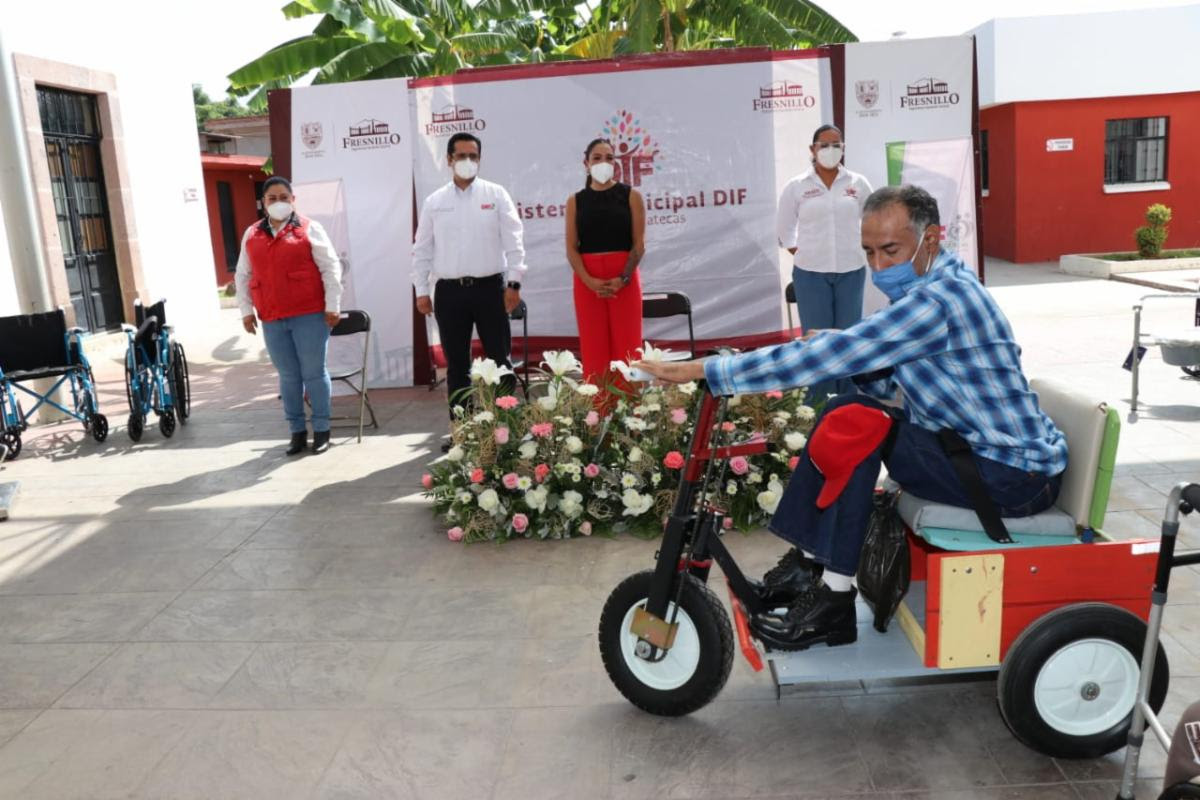 La entrega de sillas de ruedas, aparatos funcionales, como andadores y un vehículo para movilidad, para una persona con discapacidad motriz, se realizó en coordinación con el Sistema Municipal DIF Fresnillo, por lo cual el funcionario estuvo acompañado por la Presidenta Honorífica, María Guadalupe Pérez Vázquez.