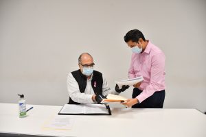 Por tercera ocasión, el alcalde Guadalupe, Julio César Chávez Padilla, entregó al titular de la Secretaría de Salud del Estado, Gilberto Breña Cantú, las sugerencias del Ayuntamiento de Guadalupe referentes al Acuerdo General relativo a la pandemia por Covid-19