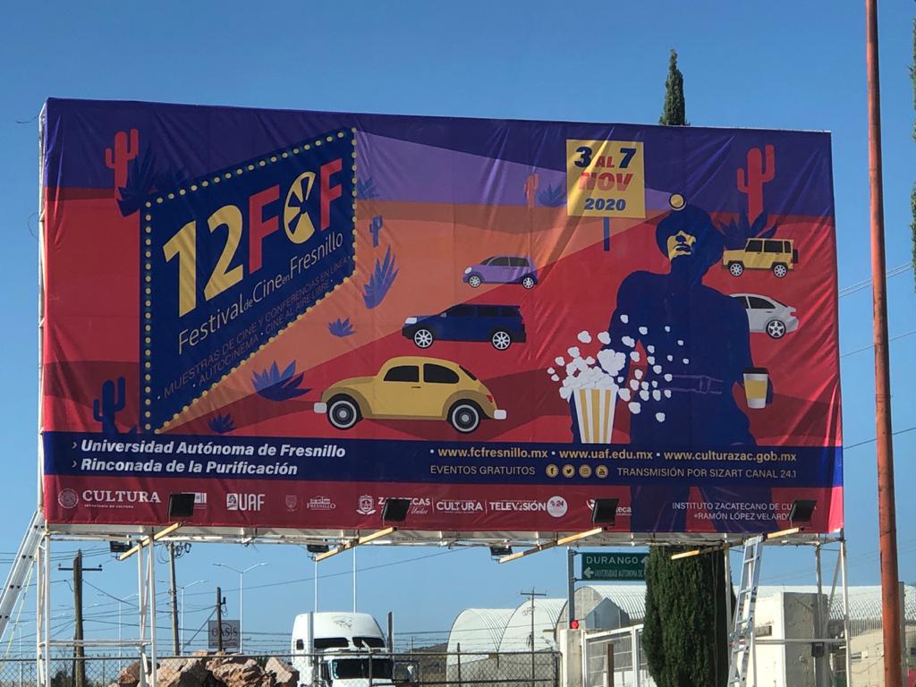 Fresnillo, Zacatecas, 02 de noviembre de 2020. Este 3 de noviembre, iniciará la Décimo Segunda Edición del Festival de Cine en Fresnillo con un programa de 32 actividades: presenciales: con Autocinema y cine al aire libre; en línea y por televisión. Todas las actividades son sin costo para el público asistente.