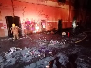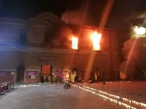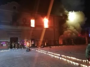 por la noche se realizaba una manifestación pacifica con expresiones de duelo por la muerte de la menor con la colocación de ofrendas pos mortem en honor a la memoria de la menor de edad asesinada, cuando en determinado momento diversos sujetos exaltaron a los asistentes a ingresar al interior de las instalaciones del Palacio Municipal, donde cometieron tropelías e incendiaron diferentes áreas de la misma, que ocasiono daños y perdidas materiales en documentación y equipos de oficina sin personas lesionadas.