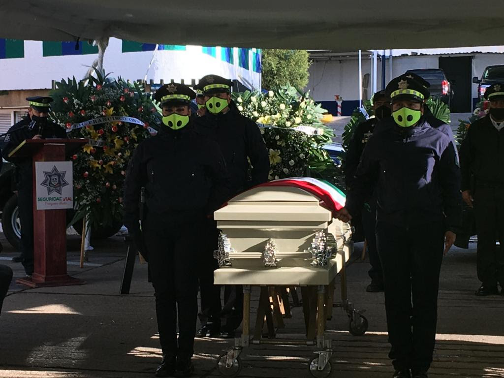 El homenaje póstumo se llevó a cabo en las instalaciones de la Dirección de la Policía de Seguridad Vial, en dónde tras el pase de lista y la entrega de bandera a su familia, sus compañeros le dieron el último adiós.