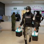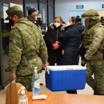 En el arribo de las vacunas estuvieron presentes representantes de la Guardia Nacional (GN), del Instituto Mexicano del Seguro Social (IMSS) y de la Secretaría del Bienestar, quienes informaron que para el traslado, distribución y aplicación de las vacunas se requirió de transporte, almacenamiento y distribución a temperatura controlada.