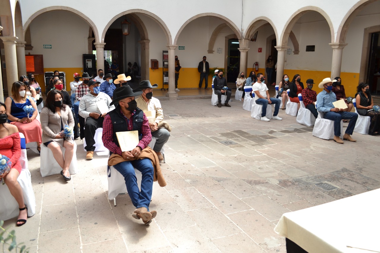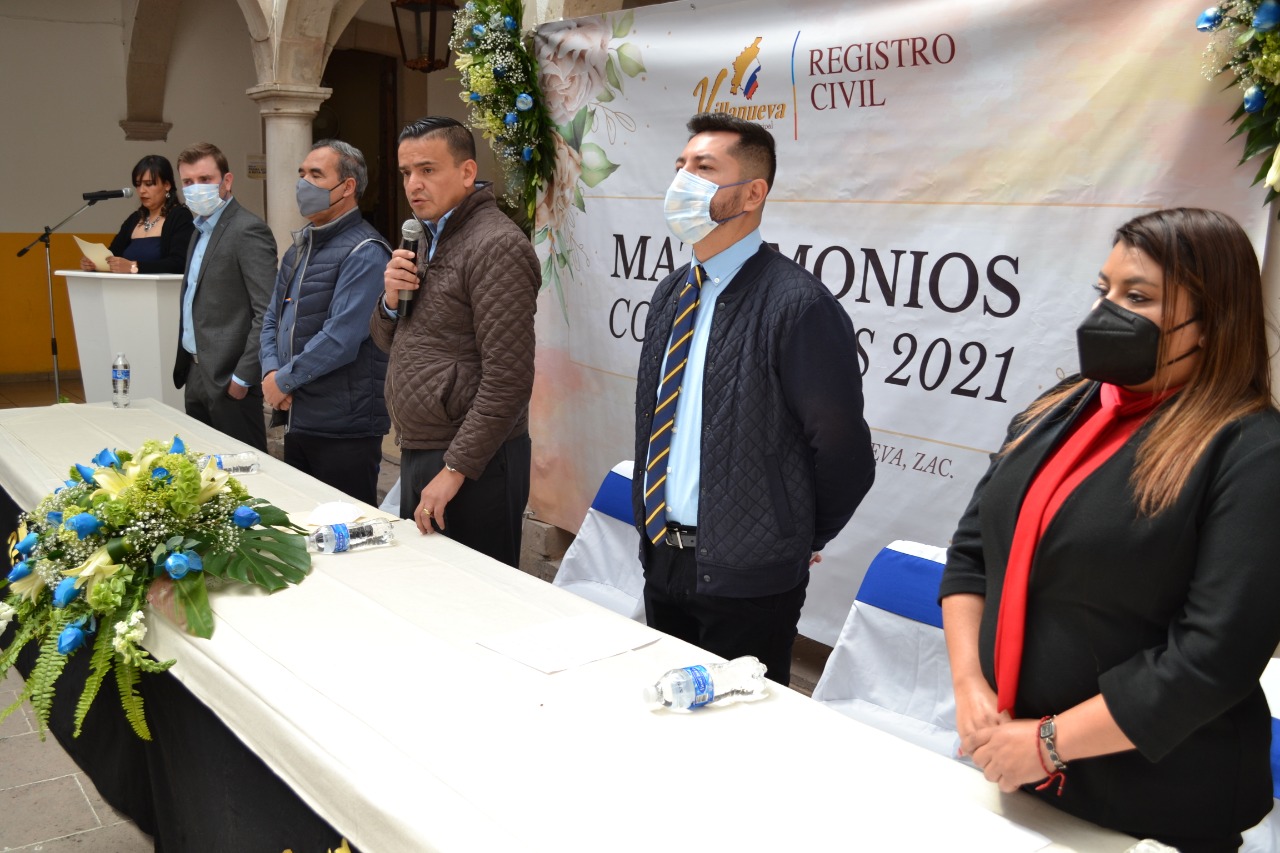 Villanueva, Zac.- En el patio central de esta presidencia municipal se llevó a cabo la ceremonia de matrimonios colectivos, en la cual 15 parejas se dieron el sí definitivo y con ello le dan certeza jurídica a su relación.