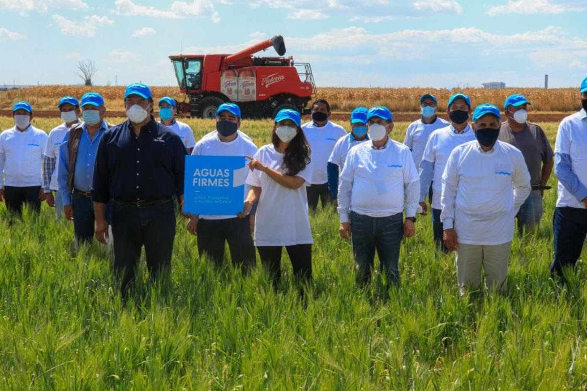 Funcionarios de la Secampo visitaron el campo demostrativo de Grupo Modelo para participar en el lanzamiento del proyecto Aguas Firmes del grupo Fondo de Agua para el Desarrollo de Zacatecas (FONADEZ), el cual busca la protección del agua y del medio ambiente promoviendo la agricultura de riego por goteo y la labranza de conservación entre otras.