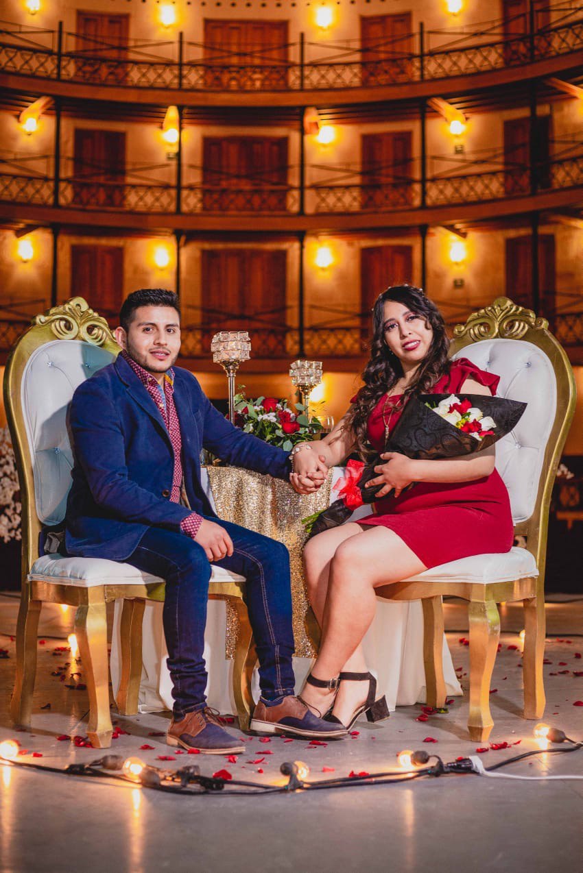 El majestuoso Teatro, José González Echeverría, fue el lugar donde un grupo de patrocinadores hicieron que el lugar luciera aún mejor para la pedida de mano. Nallely y Miguel llegaron al Teatro sorprendidos del hermoso espacio que les prepararon.