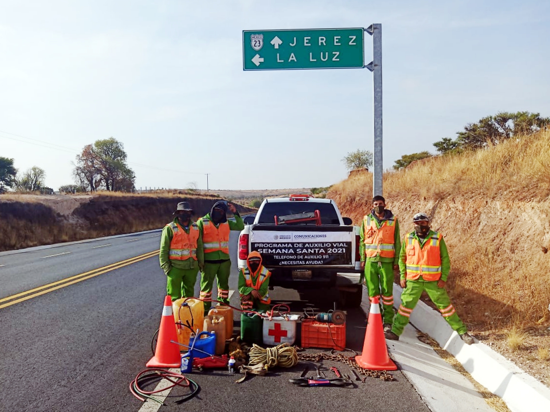 Durante este periodo vacacional y por la seguridad de los usuarios de las carreteras federales libres de peaje, el Centro Zacatecas de la Secretaría de Comunicaciones y Transportes (SCT) realiza el Programa de Auxilio Vial Semana Santa 2021.