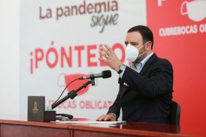 Ante Olga Sánchez Cordero, titular de la Secretaría de Gobernación (Segob), acompañado por miembros del Consejo Estatal de Salud, el Gobernador Tello pidió que, según la disponibilidad, se cubra a quienes desempeñan labores en hospitales e instituciones de salud públicas y privadas.