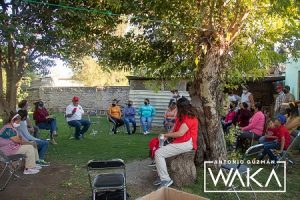 Guadalupe, Zac.- Antonio Guzmán, “Waka”, se reunió con “la raza beisbolera” de los equipos varoniles de la comunidad Martínez Domínguez, donde se comprometió a la gestión de un campo de béisbol que tenga condiciones dignas para las y los jugadores.