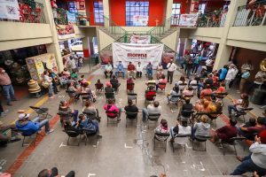 Saúl Monreal Ávila, candidato a la presidencia municipal de Fresnillo por Morena sostuvo una reunión con comerciantes en el Mercado Hidalgo, donde aseguró que reactivará este establecimiento y fortalecerá el comercio local, que es una actividad fundamental de El Mineral.