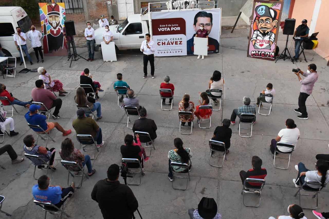 En las colonias La Villita, Valle Dorado y La Comarca, así como en el Barrio de Santa Rita, al igual que en todo el municipio de Guadalupe y de nuestro estado, necesitamos un Gobernador aliado como lo será David Monreal, dijo el candidato de Morena a la Presidencia Municipal de Guadalupe, Julio César Chávez Padilla, «porque necesitamos consolidar la transformación de nuestro municipio e iniciar de manera firme y decidida con la transformación de todo el estado de Zacatecas», dijo.