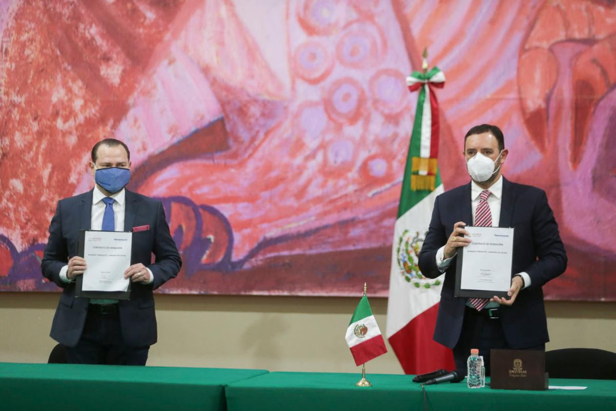 El Gobernador Alejandro Tello y Peter Hughes Hallet’s, Director País Newmont México, firmaron un contrato de donación por 20 millones de pesos, que serán utilizados para la compra de insumos médicos y preventivos del COVID-19 en la entidad.