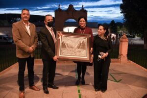 Durante la inauguración de la exposición Patria Diamantina en el Museo Virreinal de Guadalupe, Alejandra Frausto Guerrero, Secretaria de Cultura del Gobierno de México, acordó con el alcalde de Guadalupe, César Artemio González, dar seguimiento y respaldar los proyectos que se tienen en la materia.