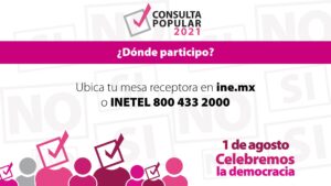 El domingo 1 de agosto estarán abiertas las Mesas Receptoras de Consulta Popular de las 8:00 de la mañana a las 6:00 de la tarde, y posteriormente se realizará el cómputo correspondiente.