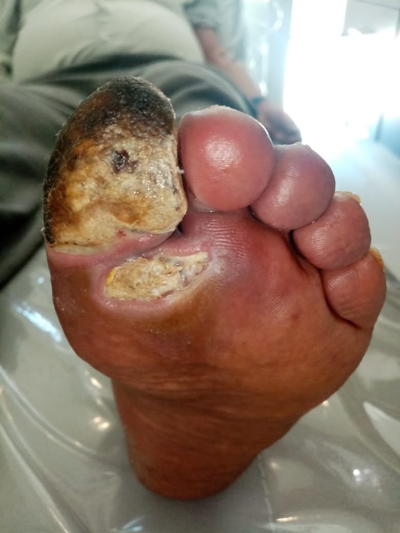 Algunos médicos deciden no tratar la gangrena porque podría tratarse de gangrena gaseosa, la cual despide un gas tóxico que la persona que lo perciba puede morir en aproximadamente cuatro horas, incluso ha habido casos de médicos que han fallecido por esta causa. Sin embargo, la gangrena seca se puede controlar con la dieta, anticoagulantes y antibióticos.