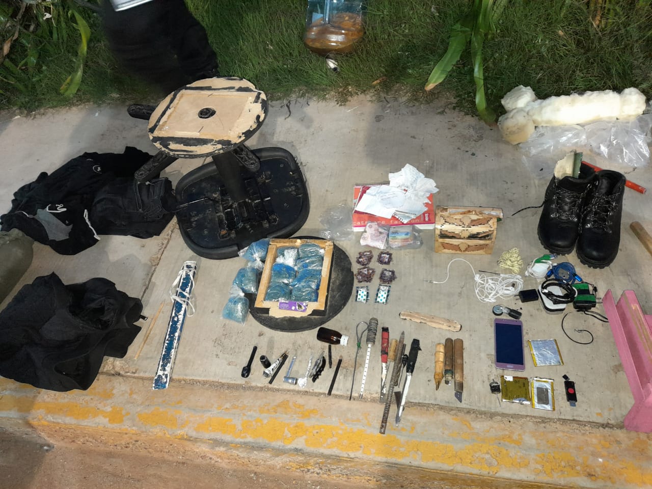 El resultado de este procedimiento fue el aseguramiento de 20 bolsas de cristal laminado, cuatro envoltorios con polvo blanco, probable cocaína. 10 bolsas que contenían hierba verde y seca con características de la marihuana, un celular, tres baterías para celular, una memoria usa.