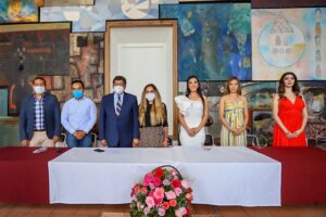 Fresnillo, Zac.- En el marco de la celebración del 467 aniversario de la fundación del Real de Minas de Fresnillo, este lunes, el alcalde, Saúl Monreal Ávila y su esposa, Lupita Pérez Vázquez, presidenta honorífica del DIF, presentaron a las candidatas a reina de la edición 2021 de la fiesta de los fresnillenses.
