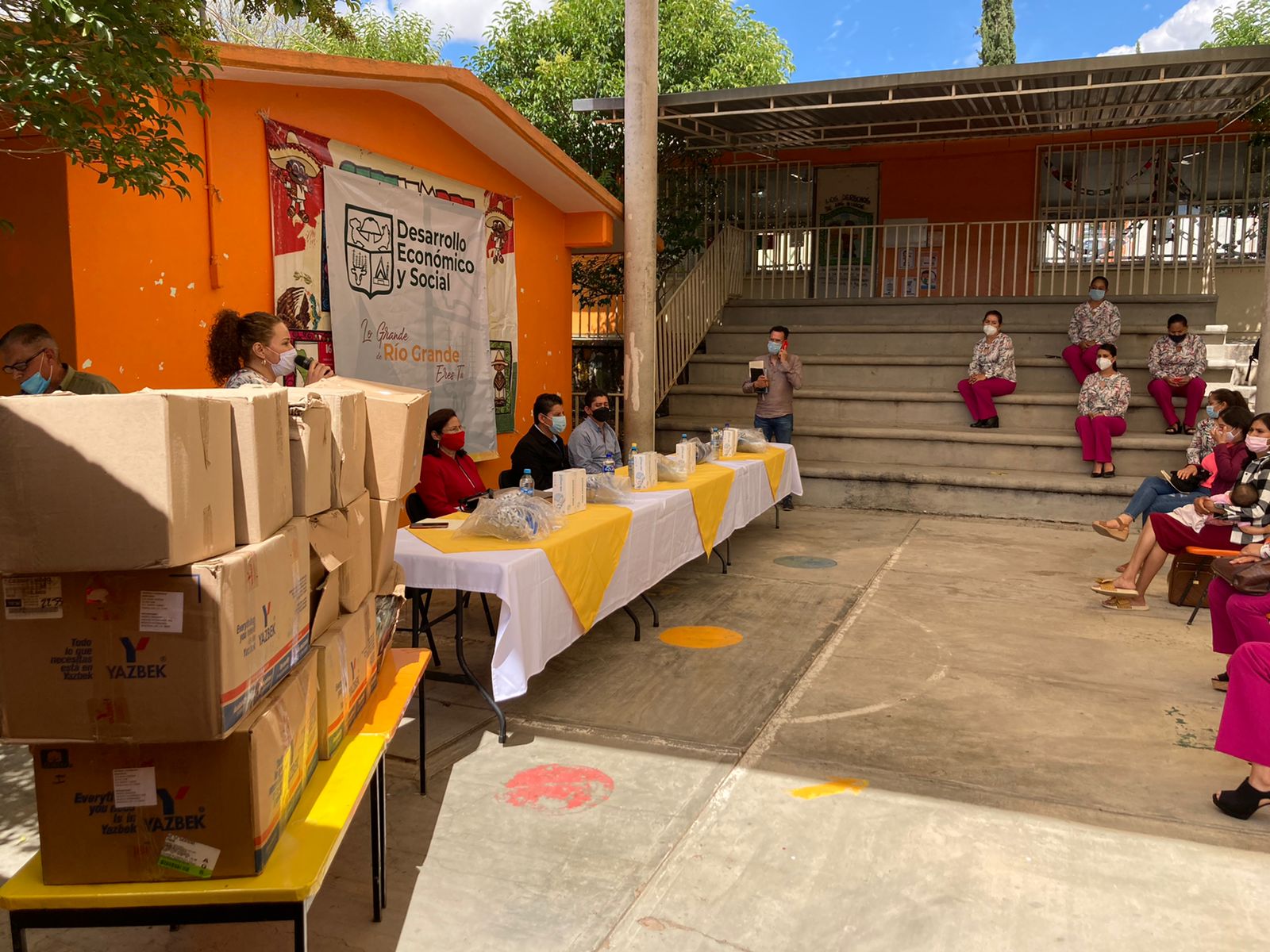 RÍO GRANDE, ZAC.- La educación y la salud son de las prioridades a atender en la administración del Alcalde de Río Grande, Mario Córdova Longoria, por lo que éste jueves hizo la entrega de cubrebocas y caretas al personal administrativo del Kinder Coyolxauhqui.
