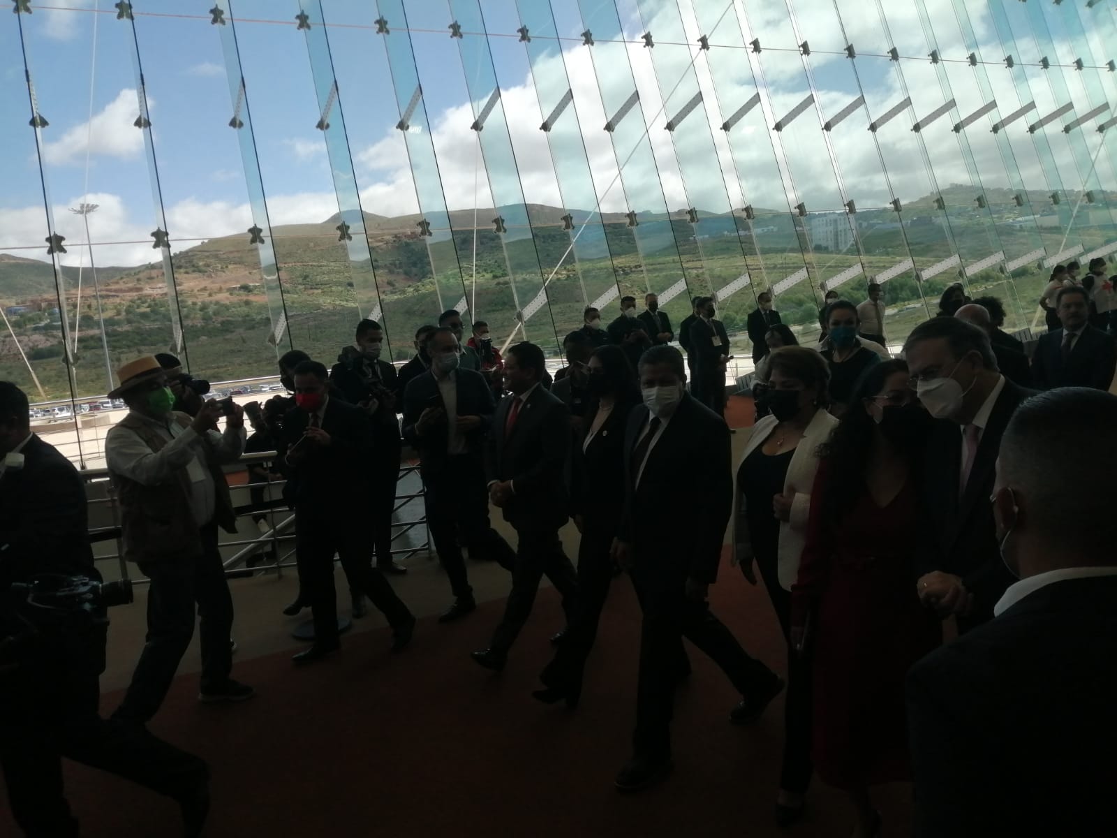 Invitados diversos, desde candidatos que contendieron por los colores de MORENA que no ganaron en sus municipios, y muchos de los alcaldes electos que asumirán el 15 de septiembre sus responsabilidades, de los diversos partidos, se concentraron en el interior del Palacio de Convenciones donde escucharon las particularidades del mensaje del Gobernador Monreal.