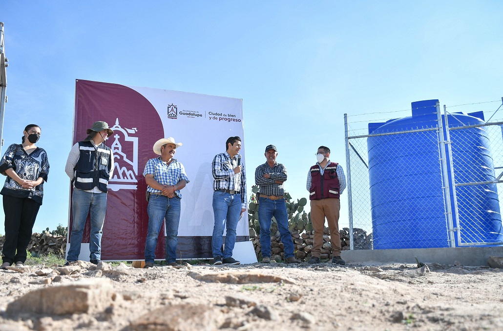 En una visita más a la comunidad de El Pescado –geográficamente una de las más alejadas del municipio–, el Presidente Municipal de Guadalupe, Julio César Chávez Padilla, entregó la instalación de un depósito tipo cisterna de almacenamiento de agua, línea de conducción y descarga de agua potable para el acceso a este servicio básico de los habitantes de la zona.