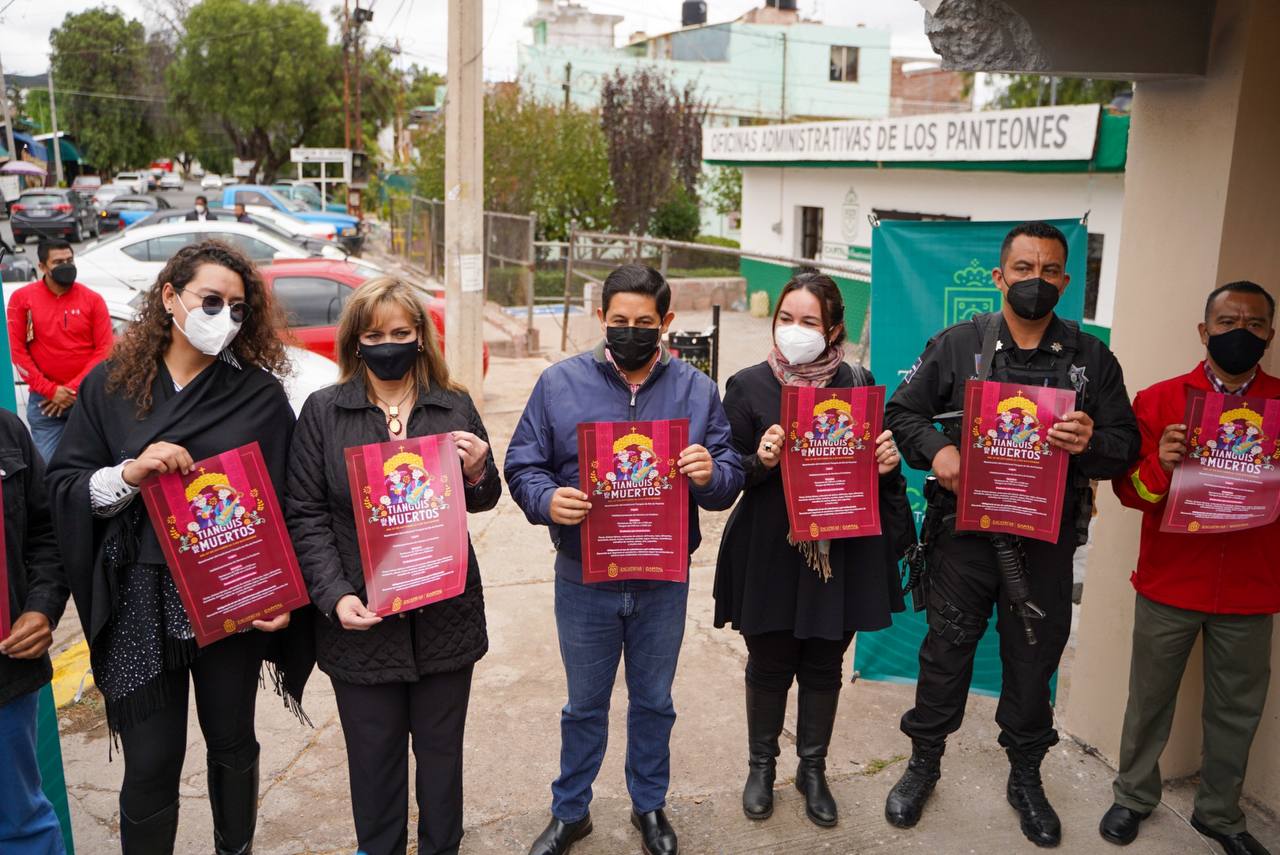 El alcalde capitalino, Jorge Miranda Castro, en compañía de la secretaria de Desarrollo Económico y Turismo, Laila Villasuso Sabag anunció el regreso del Tianguis de Día de Muertos en la vialidad de los panteones Herrera y la Purísima, el cual se realizará del 27 de octubre al 3 de noviembre.