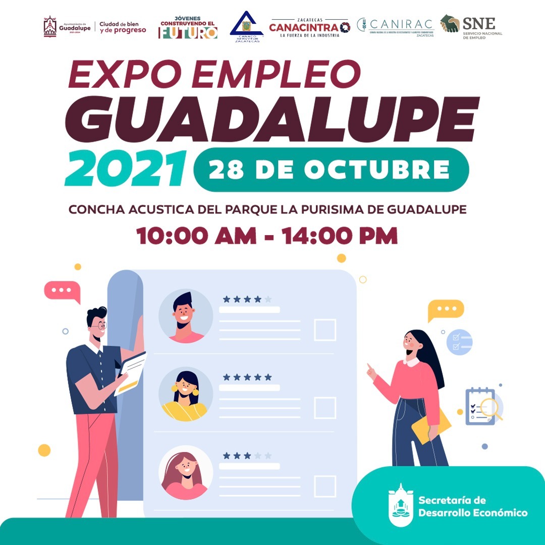 Una de las estrategias transversales en la actual administración municipal consiste en generar empleos dignos para las y los guadalupenses, por ello, el Ayuntamiento de Guadalupe que encabeza el maestro Julio César Chávez Padilla, a través de la Secretaría de Desarrollo Económico y Social llevará a cabo la Expo Empleo Guadalupe 2021.