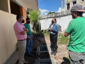 Valenzuela Esquivel se reunió con la directora de la escuela primaria Benito Juárez, maestra Alma Delia Sotelo Villegas, quien solicitó apoyo para la conexión del drenaje de los nuevos módulos sanitarios, debido a que en próximas semanas regresarán a clases presenciales.