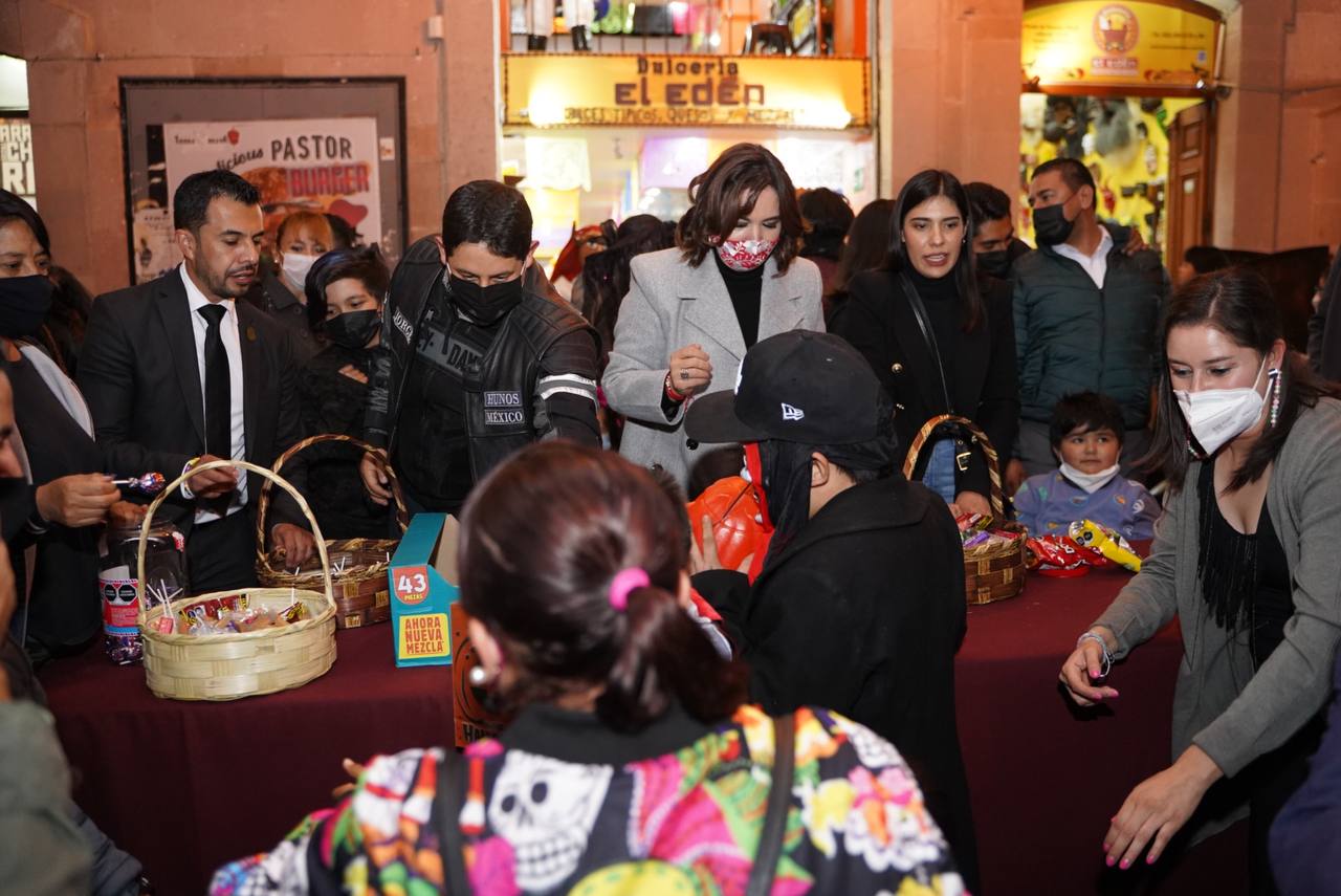 Al finalizar el recorrido, la secretaria de Desarrollo Económico y Turismo, así como el presidente municipal, repartieron dulces a las y los niños que se acercaron a recolectar caramelos.