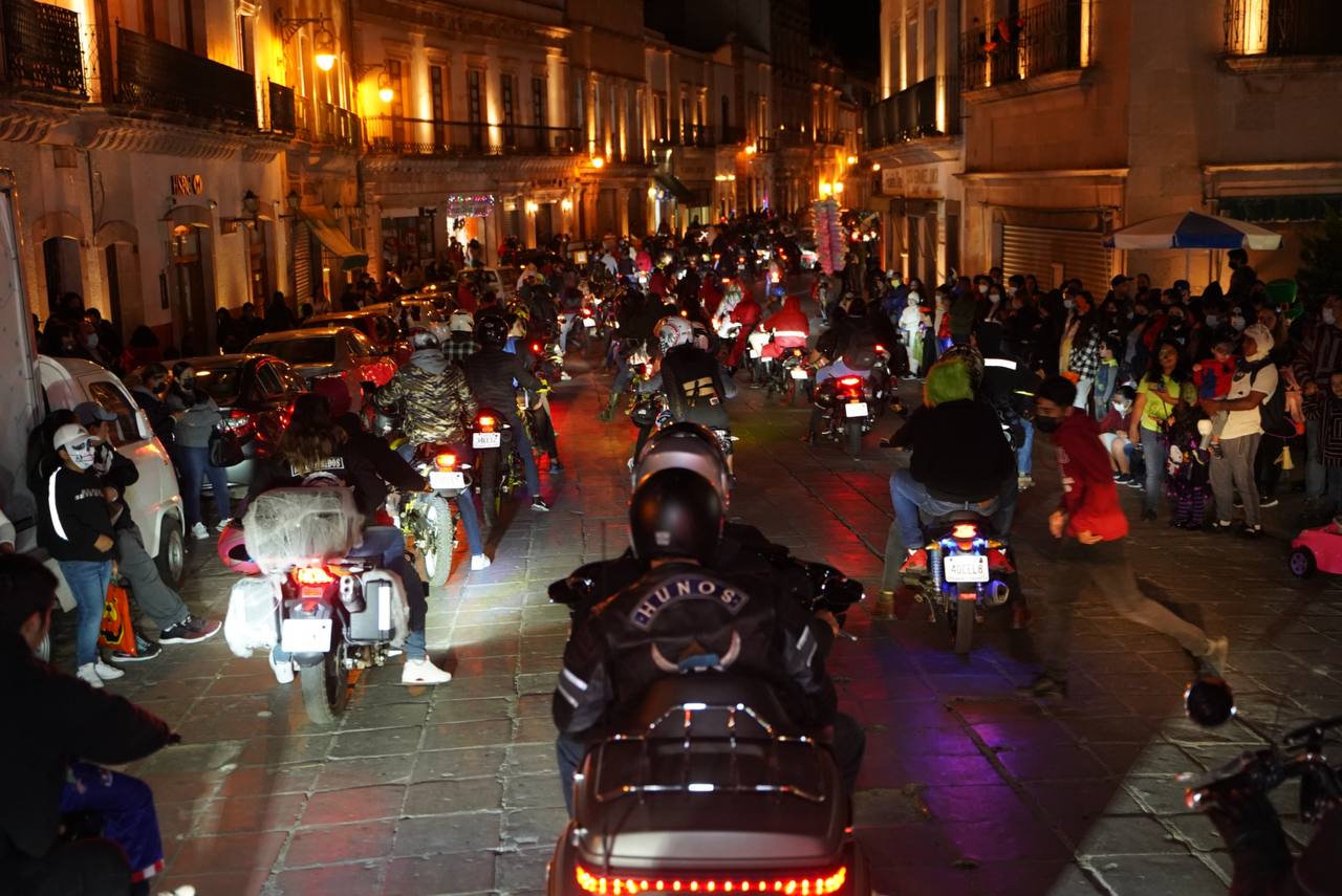 Asimismo, zacatecanos y turistas de todas las edades abarrotaron las diferentes calles y avenidas del Centro Histórico, para ver el desfile de las y los motociclistas que asombraron con sus disfraces alusivos a la fecha.