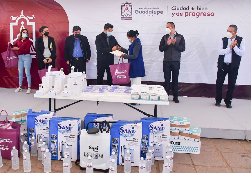 Con el fin de garantizar el acceso a los insumos necesarios para que el regreso presencial a las aulas del municipio ocurra de manera adecuada y segura, fue que el Presidente Municipal de Guadalupe, Julio César Chávez Padilla, en coordinación con la Secretaria del Bienestar Social del municipio por medio de la Subdirección de Salud Pública, hizo entrega de kits de prevención contra el Covid-19 a 13 instituciones educativas, esto en las instalaciones del Centro de Educación Básica para Alumnos de Alto Rendimiento(Cebaare).