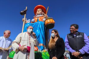 Fresnillo, Zac.- En la localidad de Plateros el Presidente , Saúl Monreal Ávila acompañado de su esposa Lupita Pérez Vázquez, inauguraron la imagen del Santo Niño de Atocha, la más grande en el mundo con más de siete metros de altura y con una base de cuatro metros aproximadamente. Con esto se inicia la primera etapa de un proyecto integral turístico -religioso, que pretende dar más realce a la tierra de fe y milagros como se le conoce a la comunidad.