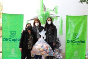 El Sistema Municipal DIF Zacatecas, encabezado por la directora Claudia Escobedo entregó juguetes, bolos, cobijas y piñatas en las comunidades, instituciones educativas, así como a las y los presidentes o representantes de colonias.