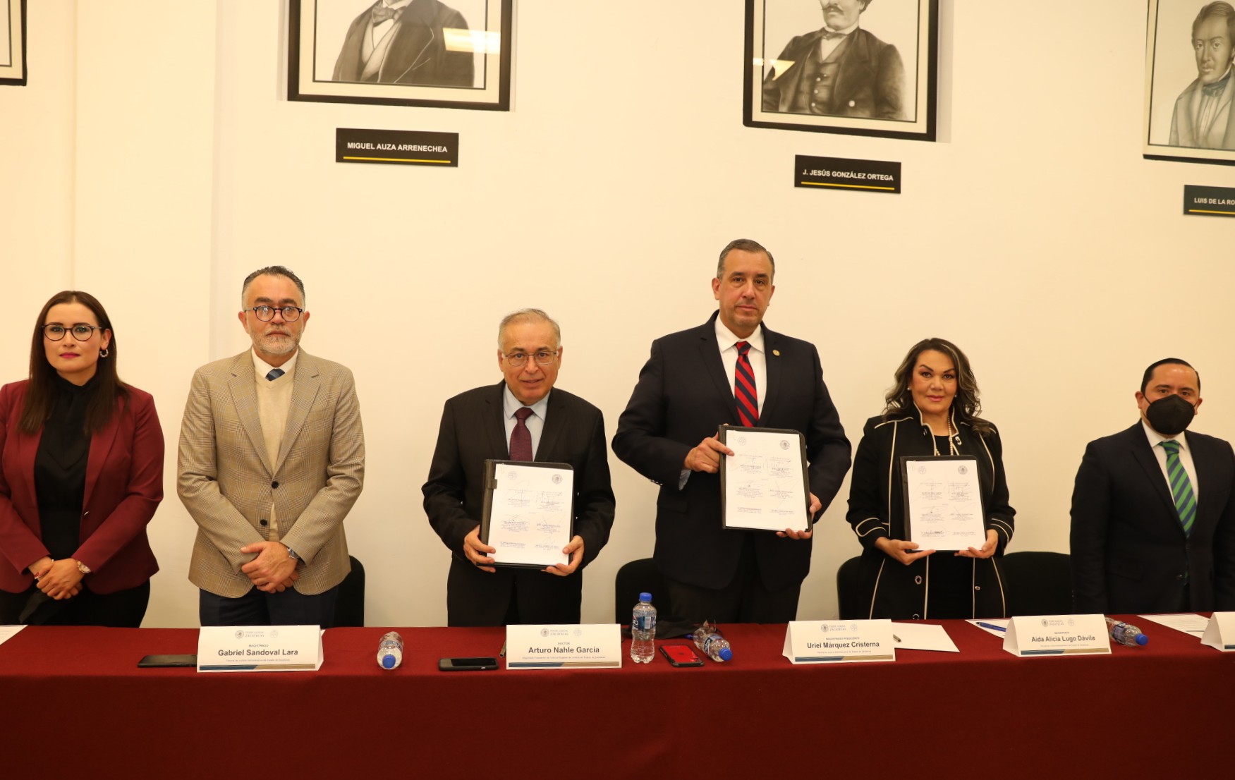 El Tribunal Superior de Justicia del Estado a través de su Presidente el Magistrado Arturo Nahle García, suscribió un Convenio de Colaboración con el Tribunal de Justicia Administrativa del Estado representado por su Presidente el Magistrado Uriel Márquez Cristerna, para que la Escuela Judicial imparta una Maestría y capacitación a funcionarios de otros tribunales autónomos que no forman parte del Poder Judicial.