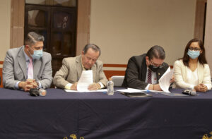 En la firma del Convenio estuvieron Presentas las Consejeras y Consejeros Electorales, integrantes de la Junta Ejecutiva del IEEZ, el Secretario Ejecutivo del Instituto, y funcionarios de la Universidad Autónoma de Zacatecas.