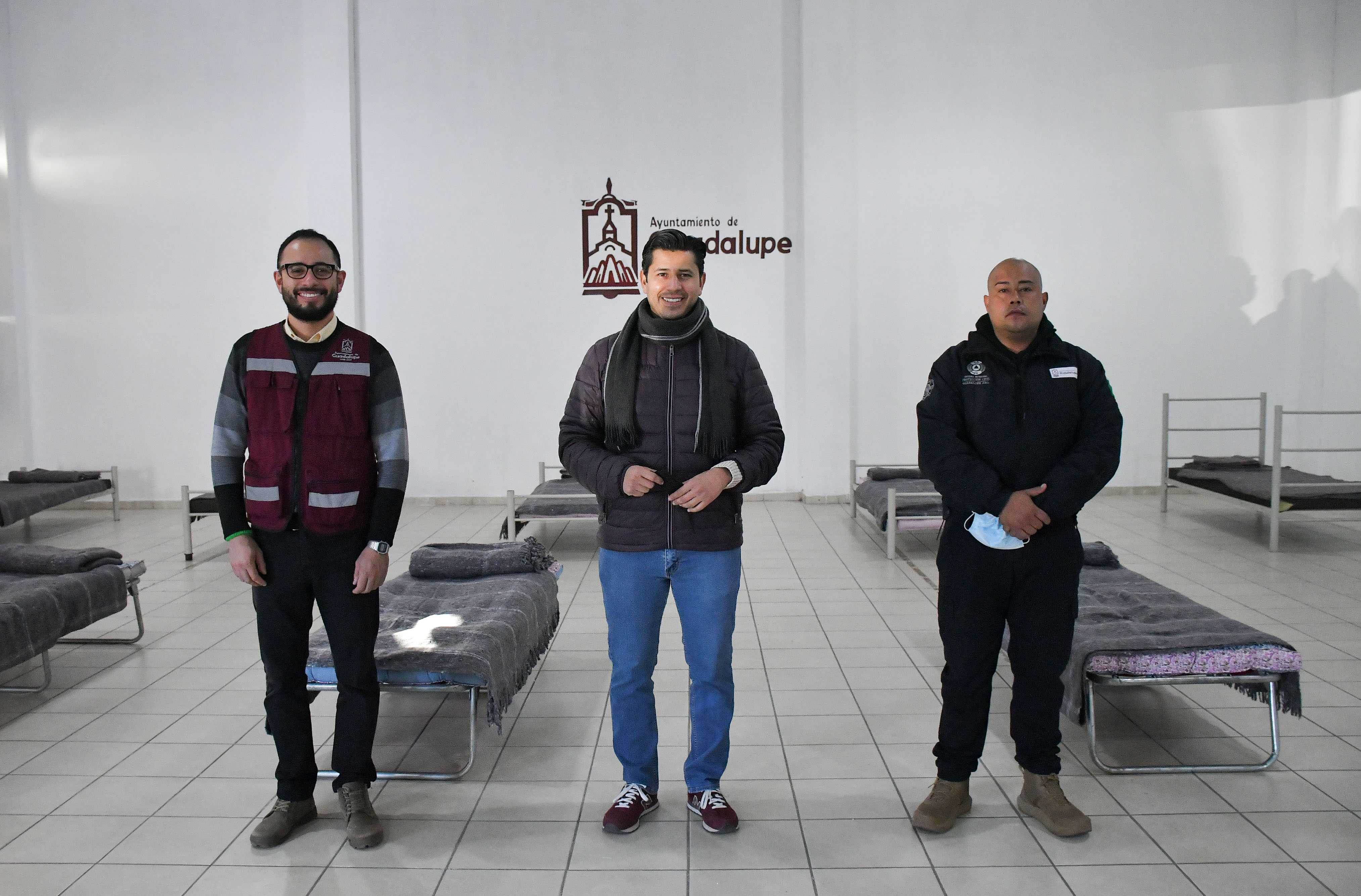 En compañía de Eleazar Limones, Secretario de Gobierno Municipal y del Jefe del Departamento de Protección Civil del Municipio de Guadalupe, el Alcalde Julio César Chávez Padilla, informó que ante las inclemencias del tiempo y el marcado descenso de temperaturas que se pronostican para esta temporada invernal en la zona conurbada de la entidad, se dispuso como una de las prioridades de atención, poner en funcionamiento este inmueble como refugio temporal para la población que se encuentre en situación de calle o bien para personas que tienen como destino otro estado o incluso otro país pero que transitan por la ciudad de Guadalupe.