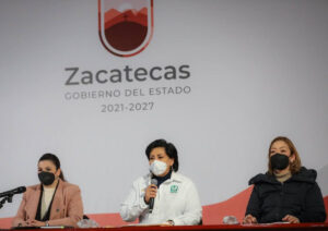 En representación del Gobernador David Monreal Ávila, Gabriela Pinedo Morales, secretaria de Gobierno, encabezó la conferencia semanal acompañada por la Delegada de Programas para el Desarrollo, Verónica Díaz Robles, y la titular de Instituto del Seguro Social en Zacatecas (IMSS), Saandra Durán Vázquez, así como los secretarios de Educación y Salud, Maribel Villalpando Haro y Uswaldo Pinedo Barrios.