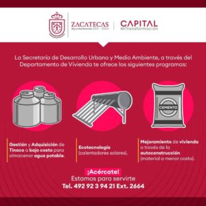 Por lo que, si algún capitalino busca adquirir a un costo más bajo alguno de estos artículos u algún otro, es necesario acudir a la Presidencia Municipal de Zacatecas y solicitar la gestión al Departamento de Vivienda.