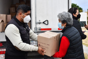 Por su parte, las familias beneficiarias del programa agradecieron la atención de las autoridades municipales por la entrega de despensas, las cuales se componen de 11 alimentos básicos como arroz, azúcar, frijol, harina, papel higiénico, entre otros productos. Desde que inició este programa, y por instrucciones del Presidente Municipal, Julio César Chávez Padilla, en cada entrega realizada en las colonias y comunidades de Guadalupe, se han respetado los protocolos de sanidad correspondientes, como la aplicación de gel alcoholado, así como la sanitización de los apoyos alimentarios y del camión en el que los transportan.
