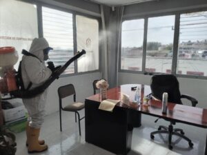 Es así que recientemente se sanitizaron las oficinas de la Presidencia Municipal y del Edificio B, ubicado en la calle del Cazador, donde se encuentran la Secretaría de Planeación y de Desarrollo Rural Sustentable, así como las Direcciones de la Mujer, de la Juventud y la Contraloría Municipal.