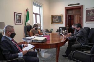 Reunidos en el despacho de la Secretaria, el mandatario estatal le planteó la problemática que se afronta con el salario de las y los trabajadores del sector educativo de la entidad, que es consecuencia de malas decisiones de los gobiernos anteriores.