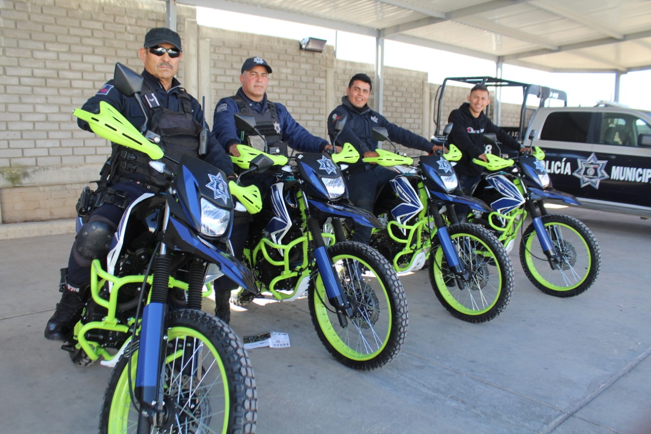 RÍO GRANDE, ZAC.– Equipan a elementos de la Dirección de Seguridad Pública Municipal de Río Grande con cuatro motocicletas y cuatro vehículos patrullas, a fin de incrementarán los rondines de los elementos de seguridad por las colonias y comunidades de la localidad.
