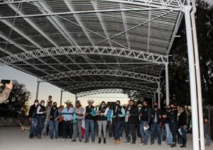 Continuando con sus actividades, Macías Zúñiga y su equipo de trabajo se trasladaron a la Candelaria, donde se llevó a cabo la entrega formal de un domo tipo 12×24 mts con recursos del Fondo III.