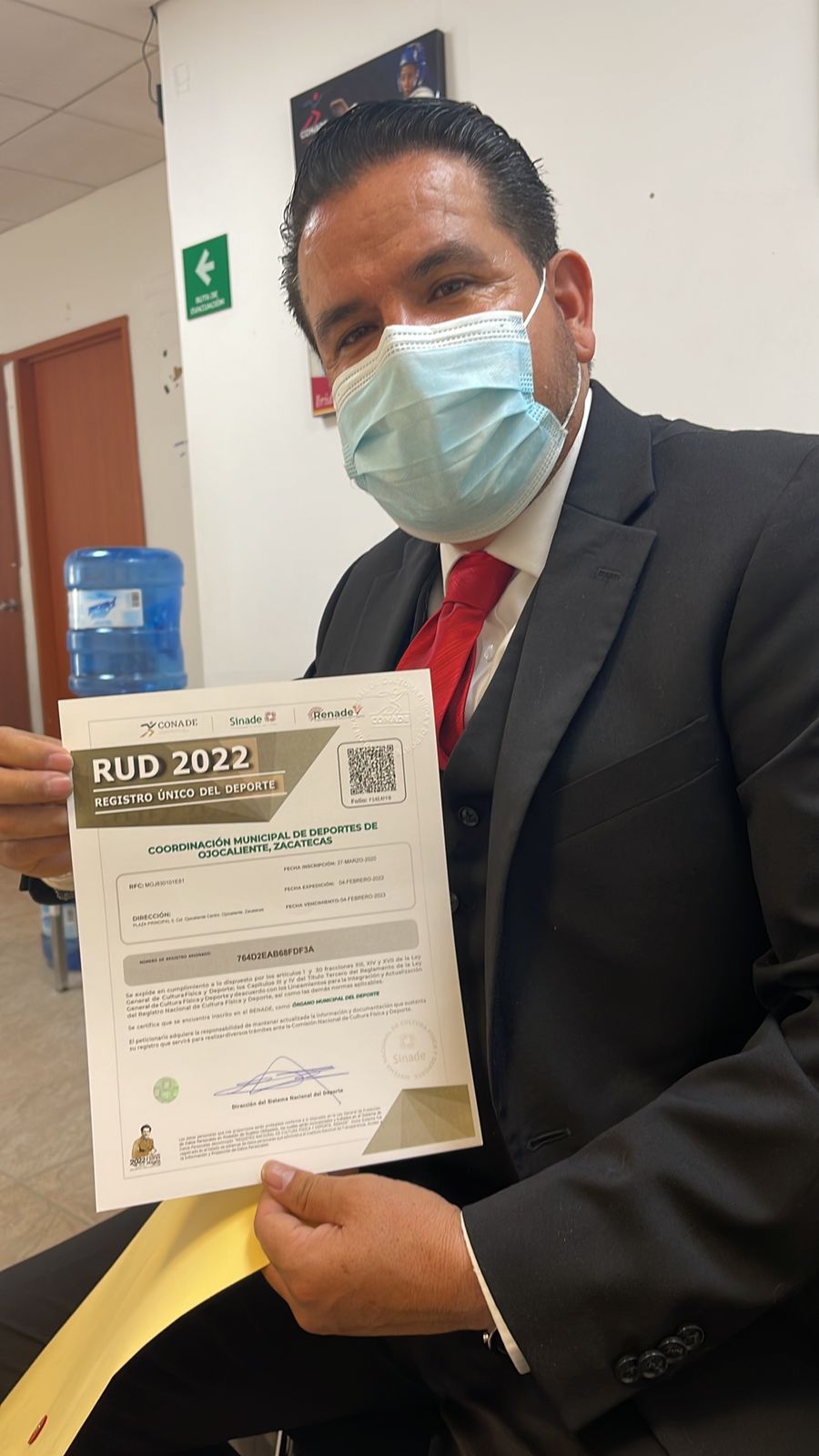 Ciudad de México, 04 de Marzo, 2022.- Daniel López Martínez, alcalde de Ojocaliente, Zacatecas, anuncio apoyos en infraestructura deportiva para deportes y disciplinas deportivas en el municipio en el presente ejercicio, al ser renovado por segunda ocasión el Registro Único del Deporte (RUD 2022) para Ojocaliente Zacatecas, que permitirá presentar proyectos de infraestructura deportiva ante el SINADE dependiente de la CONADE, la charrería, el basquetbol, futbol y la natación además de espacios de usos múltiples serán incluidos en los proyectos.
