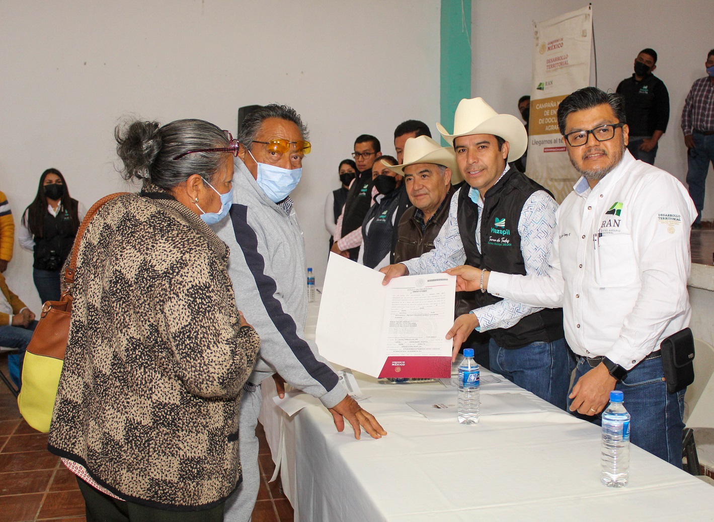 Mazapil, Zac.- Llegó al municipio de Mazapil la Campaña Nacional de Entrega de Documentos Agrarios, donde el Presidente Municipal, M.C.D. Mario Macías Zúñiga y el Delegado Estatal del Registro Agrario Nacional (RAN), Lic. Lucio López Ramírez otorgaron constancias, certificados parcelarios, certificados de uso común y títulos de propiedad a los habitantes de las distintas comunidades del municipio.