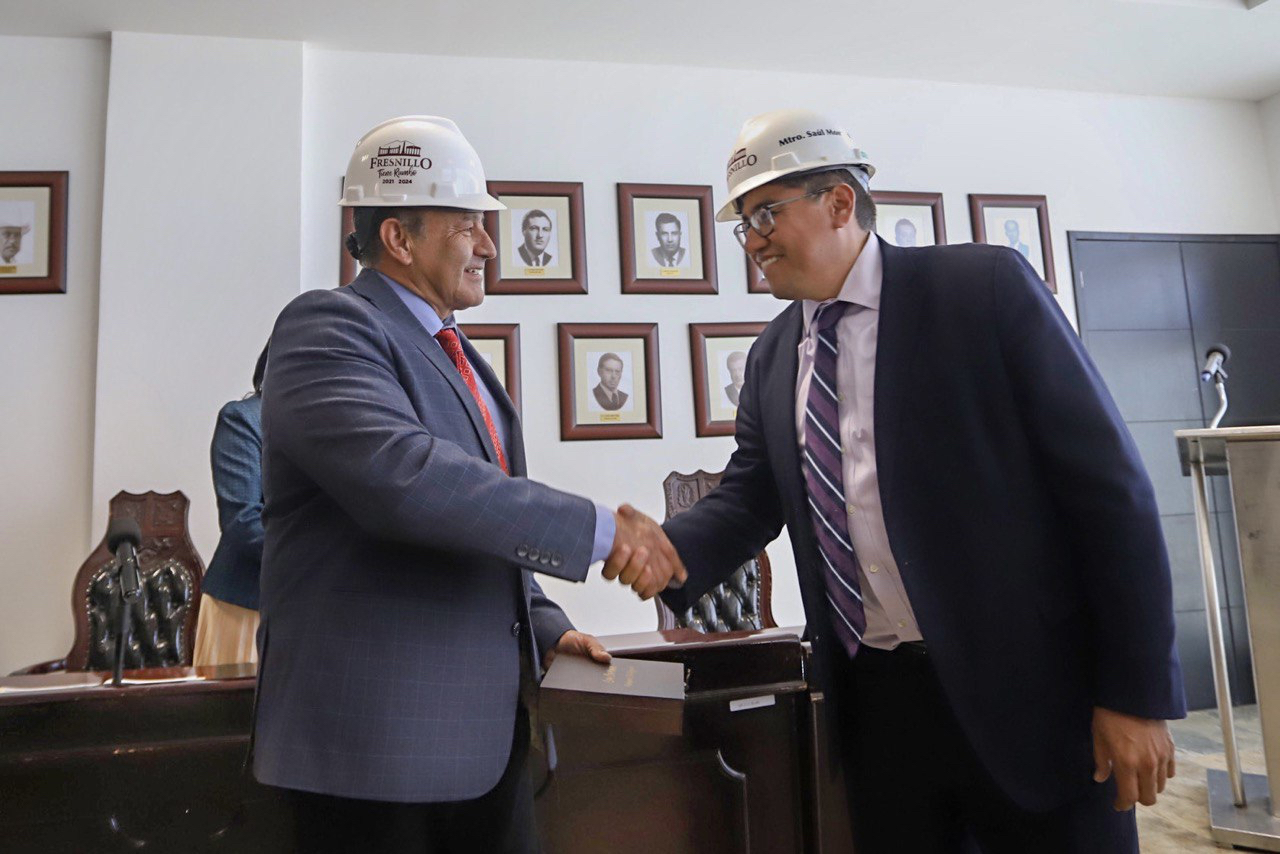El presidente municipal le entregó la placa que lo nombra Huésped Distinguido, las llaves de la ciudad y un casco de minero que representa la tradición y vocación minera que representa a Fresnillo.