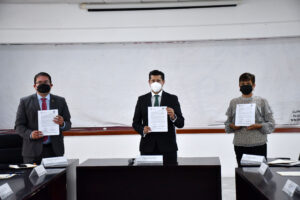 En la firma del convenio también participaron la Síndico Municipal, María de la Luz Muñoz Morales; el responsable del programa y el Secretario Académico de la Licenciatura en Cultura Física y Deporte, José Guadalupe Menchaca Fajardo y Juan Carlos Macías Miranda, respectivamente; Otiniel Serrano de Santiago, Director de la Unidad Académica de Cultura; así como César Augusto Rivera Muñoz, abogado general de la UAZ; el Coordinador de Vinculación de la UAZ, Luis Alejandro Aguilera Galaviz; el regidor y presidente de la Comisión Edilicia de Cultura Física y Deporte, Alejandro Zapata Castañeda; y el Director de Municipal del Deporte de Guadalupe, Victoriano Palomo Escamilla.