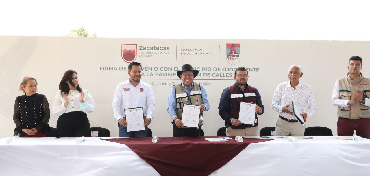 El mandatario estatal firmó con el Ayuntamiento de Ojocaliente, a cargo del alcalde Daniel López Martínez, un convenio de colaboración en materia de concurrencia de acciones y la aportación de recursos por aproximadamente 23 millones de pesos para la realización de obras públicas en este municipio.