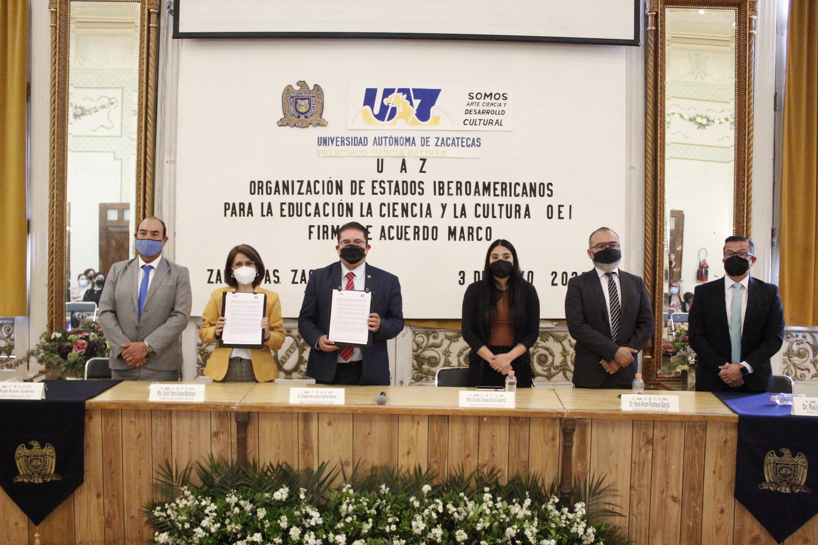 Animadas por el deseo de intensificar su cooperación para la ejecución de acciones de colaboración que contribuyan en las áreas de Educación, Ciencia y Cultura, la Universidad Autónoma de Zacatecas (UAZ) y la Organización de Estados Iberoamericanos (OEI) firmaron un convenio marco que beneficia a la comunidad de la Unidad Académica de Docencia Superior (UADS), y del programa de la Maestría en Educación y Desarrollo Profesional Docente.